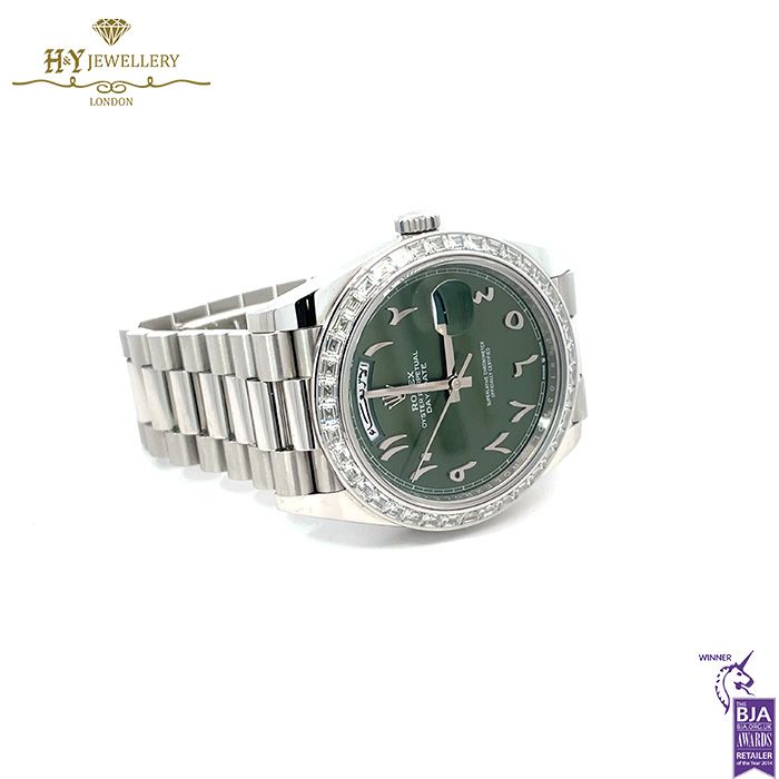 Rolex Day-Date Platinum Arabic Numerals with Diamonds – ref 228396TBR